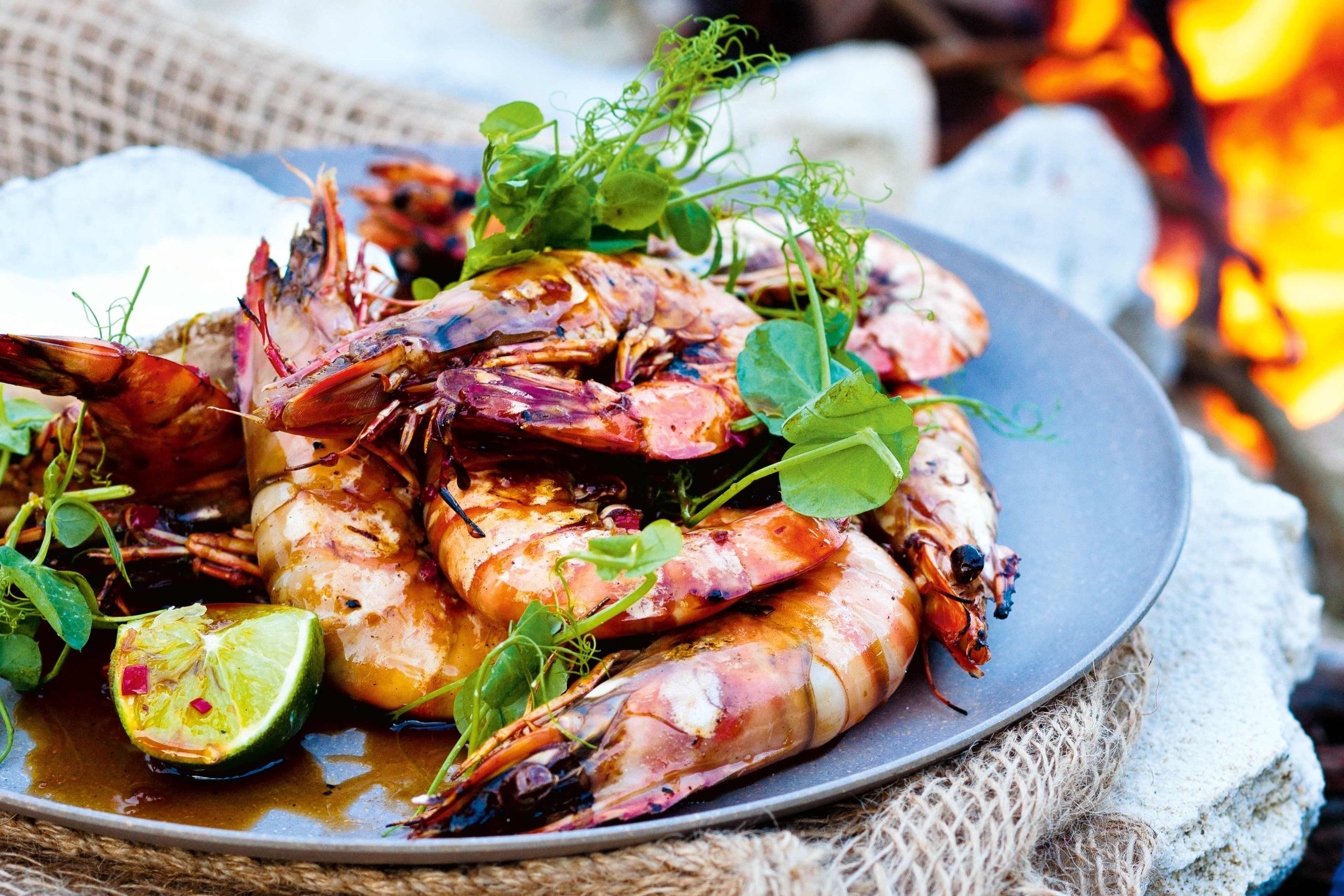 King Prawns stir fried in soy sauce with vegetables, garlic, sesame oil & finished with a lashing of brandy.