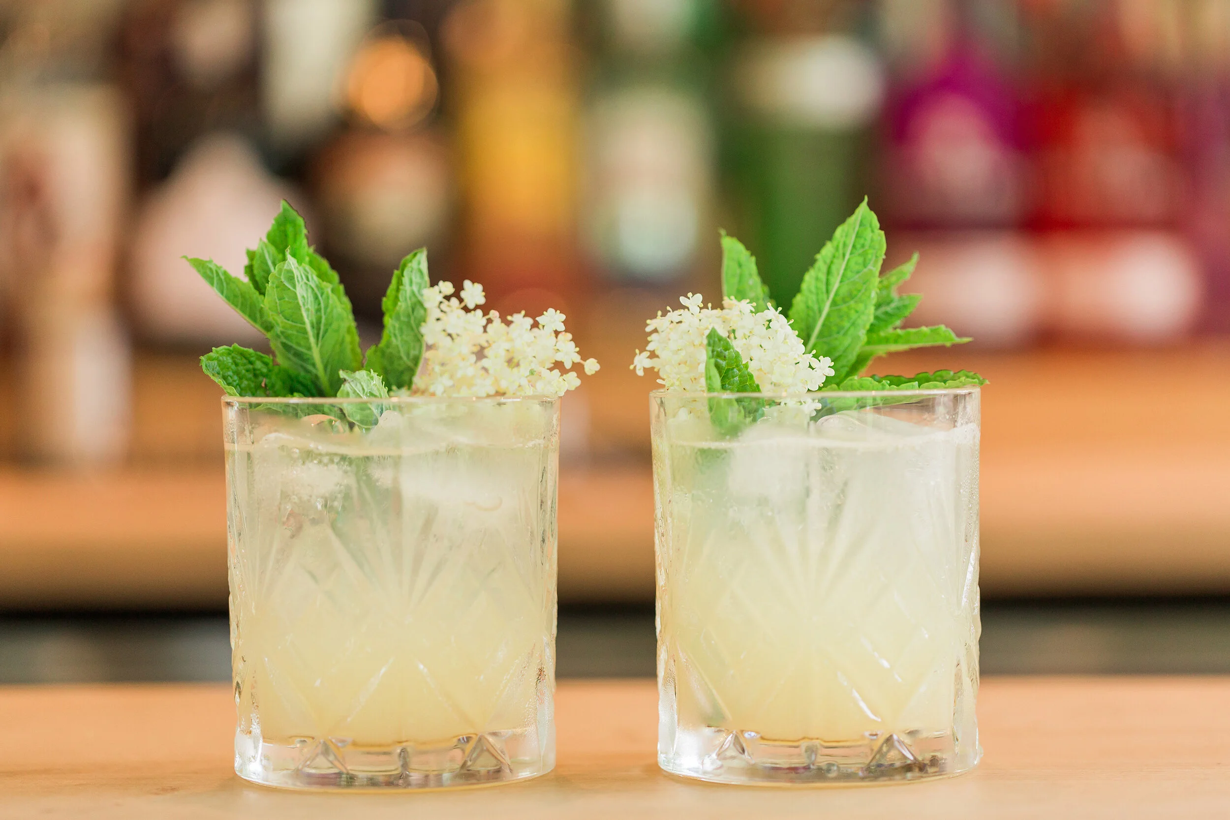 ELDERFLOWER CORDIAL, LIME JUICE, FRESH MINT, SODA, ICE