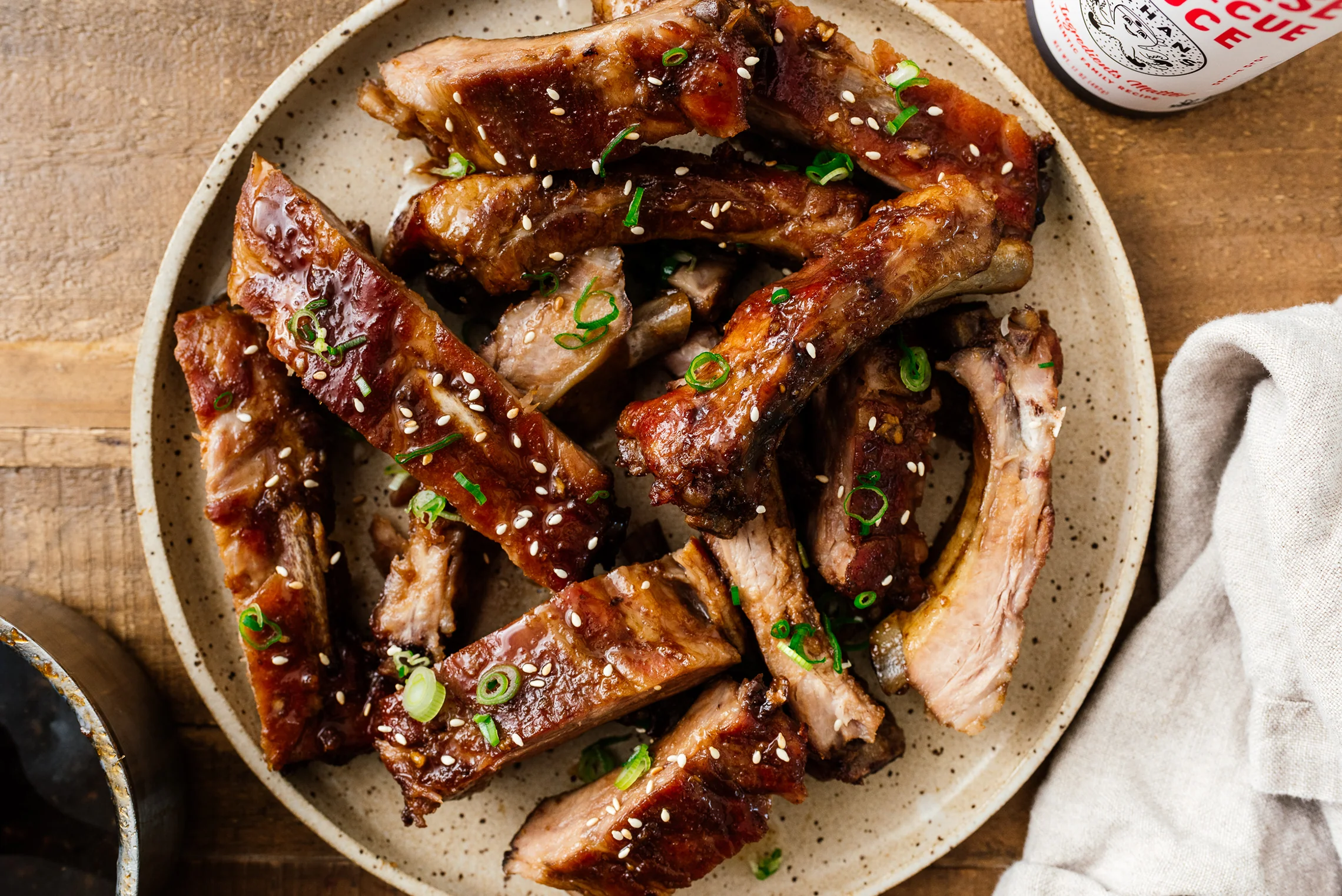 pork ribs, marinated in a sticky sweet & sour glaze. Topped with fresh chillies & spring onions.